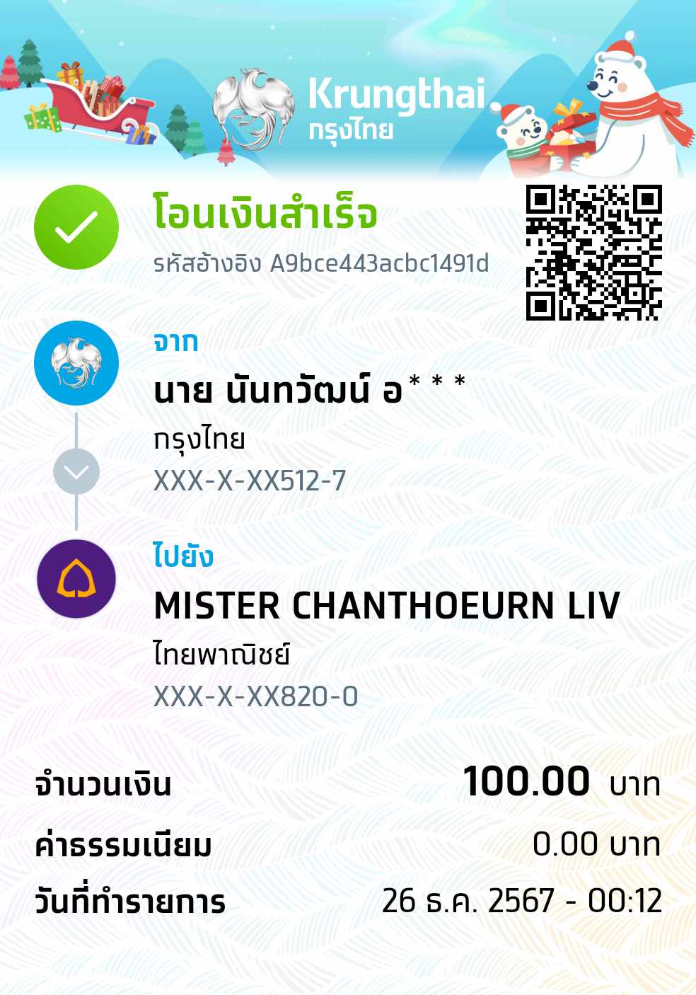 สมาชิกหมายเลข : 055-240-xxxxIP : 213.137.70.129 02-01-2025 21:19 น.เงินไม้เข้าครับ แอดมินตอบเร็ว